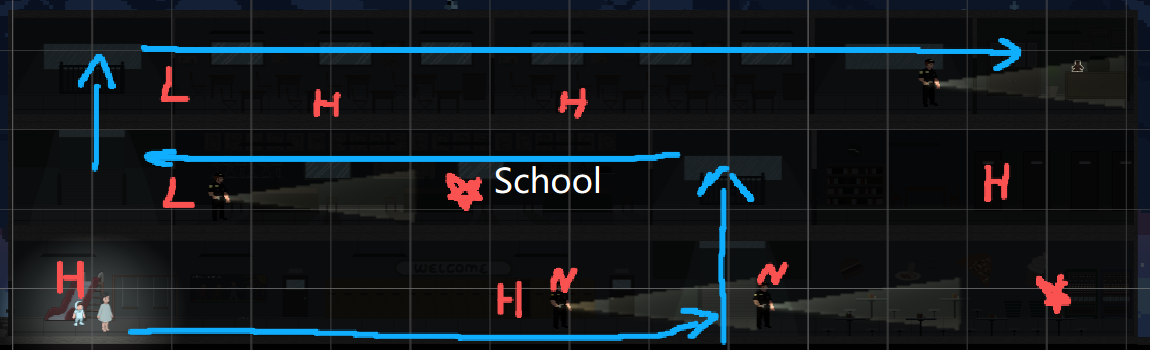 So School becomes the perfect place that fits that requirement, big(more content), more npcs(guards), and more thrilling(dark).