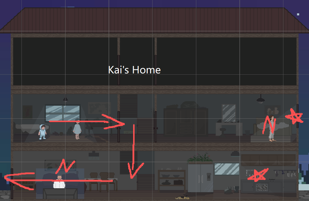 Furthermore, I did plan a scene when the bully got jumpscared and they finally shared understandings and vulnerabilities of missing someone. The bully made fun of Kai at school because he saw the same vulnerability in Kai that he shares but hates himself for.(Yes I know psychology)