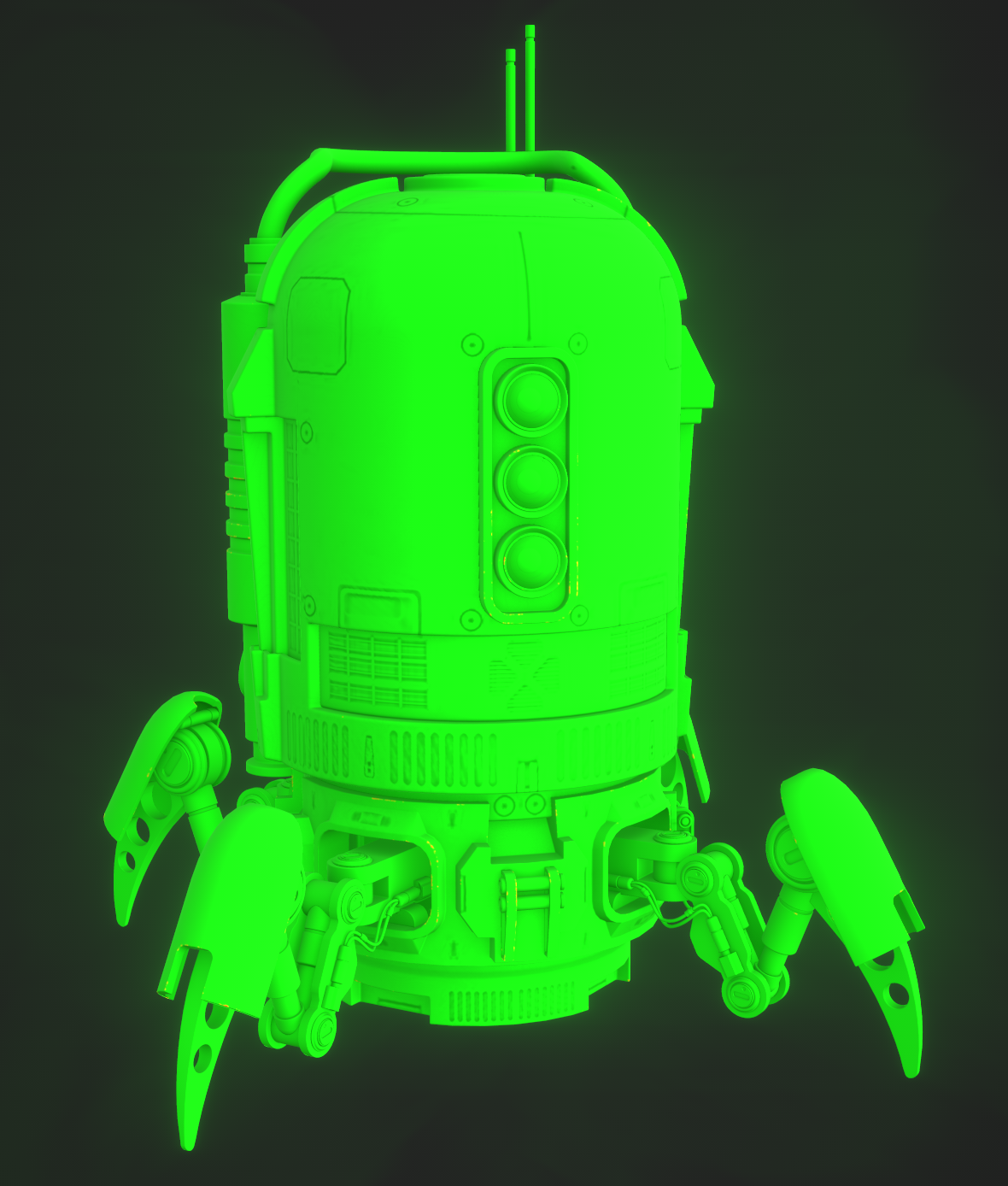 The tutorial made its shell into metal, but it doesn’t strike me as something metallic, at least not mainly. I was playing CyberPunk2077 at the time when I made it so I was picturing it as something I’ve seen in the gameplay. And I thought the surface should definetely look plastic-ish or some kind of polymer-like, in a word, artificial. At least coated that way.